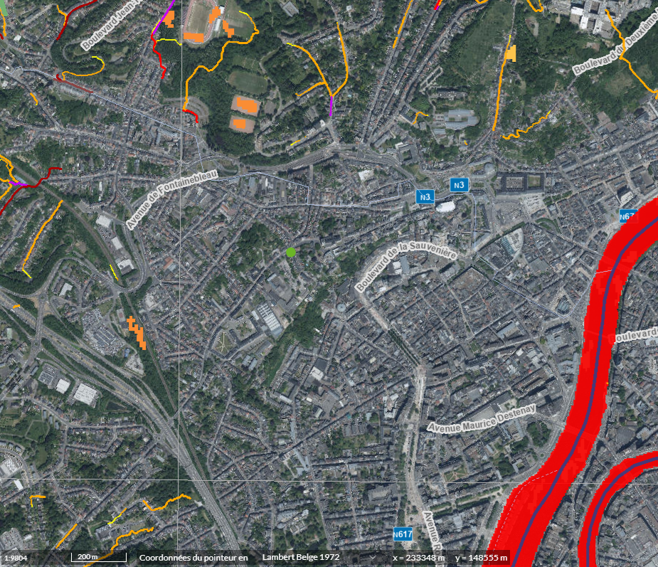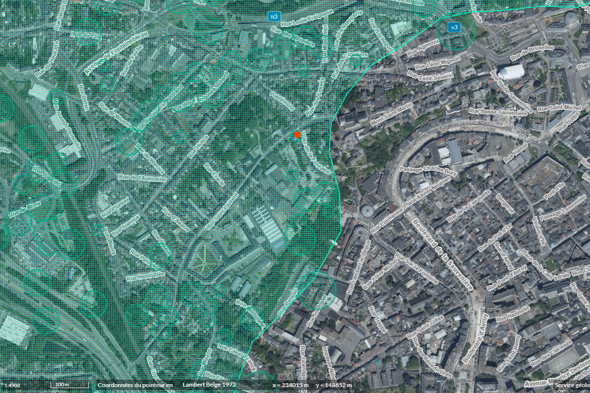 La localisation constitue un véritable atout : à quelques mètres seulement du Mont Saint-Martin, à moins de 9 minutes de la Gare Jonfosse, à moins de 10 minutes à pied de la Place Saint-Lambert et des principales artères commerçantes du centre-ville. L’accès rapide à l’A602 assure une excellente connexion autoroutière vers toutes les directions.